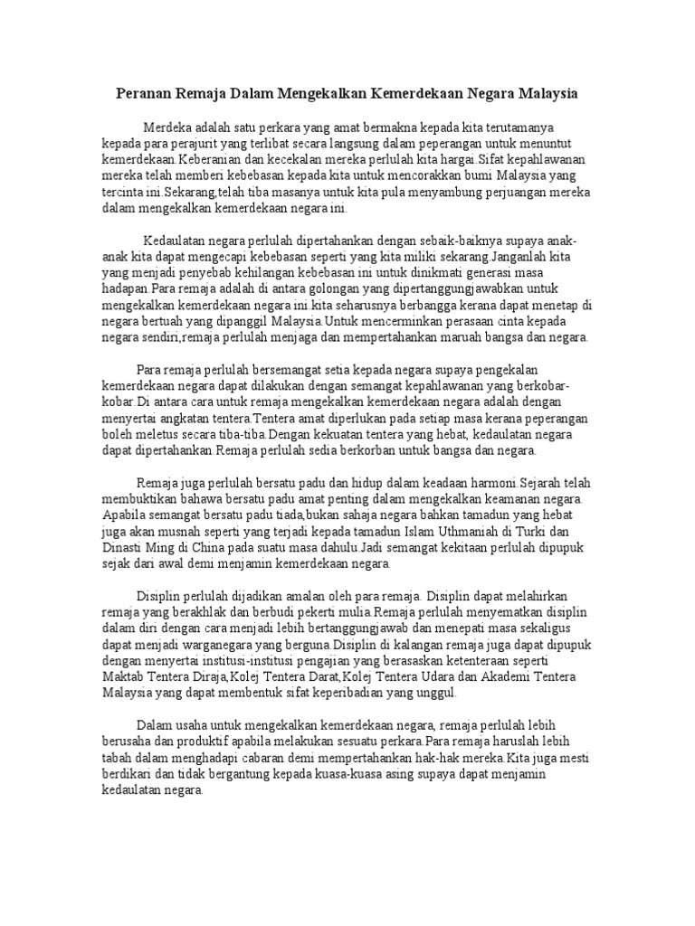 Peranan Remaja Dalam Mengekalkan Kemerdekaan Negara Malaysia Pdf